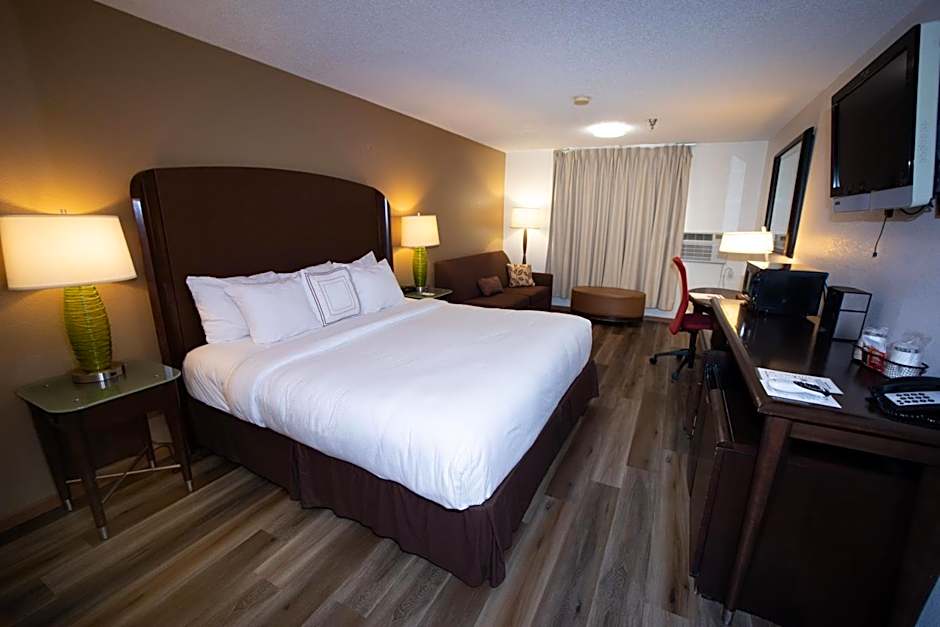 The hot tub is a top feature of this suite. The air-conditioned suite has 1 bedroom and 1 bathroom with a bath and a shower. The suite's kitchenette, which features a refrigerator and a microwave, is available for cooking and storing food. The suite features a tea and coffee maker, a seating area, a safe deposit box, a flat-screen TV with cable channels, as well as a quiet street view. The unit has 1 bed.